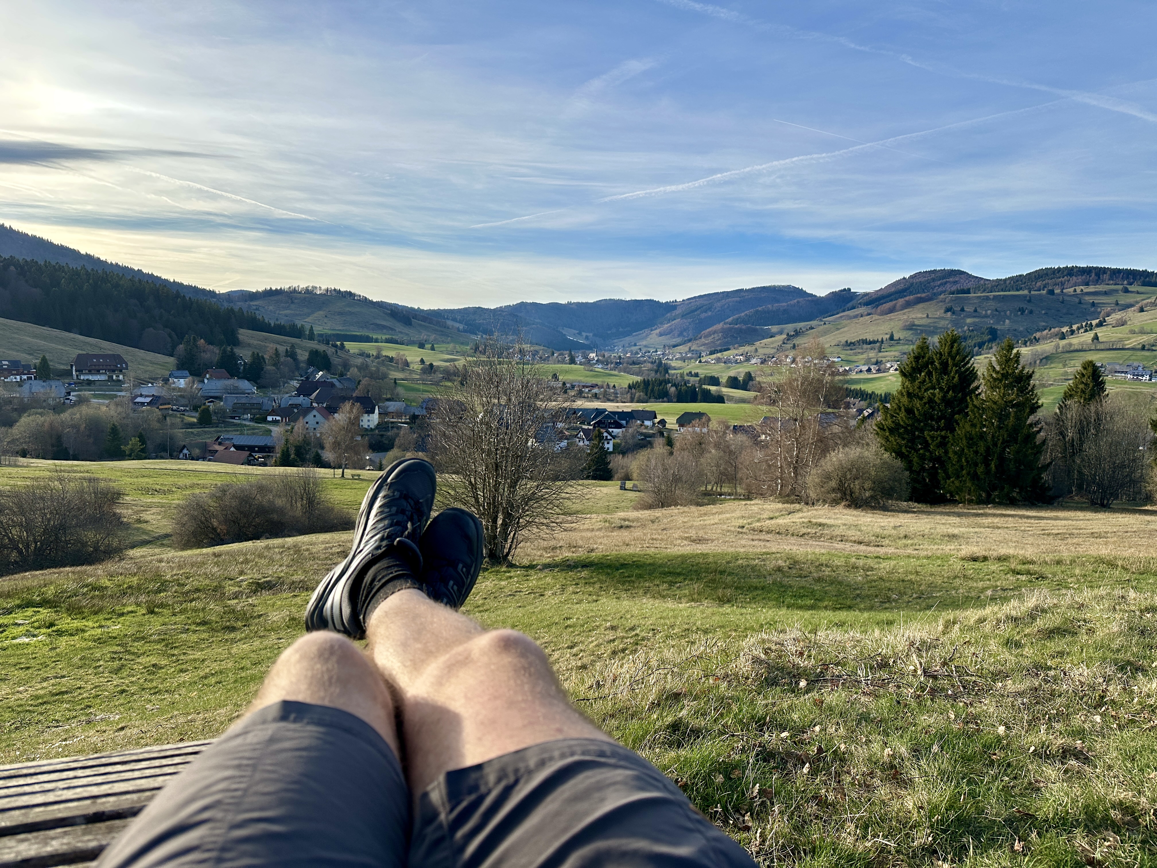 Schöner Blick über das Hochtal in der Abendsonne auf dem Hans-Thoma-Künstlerweg.